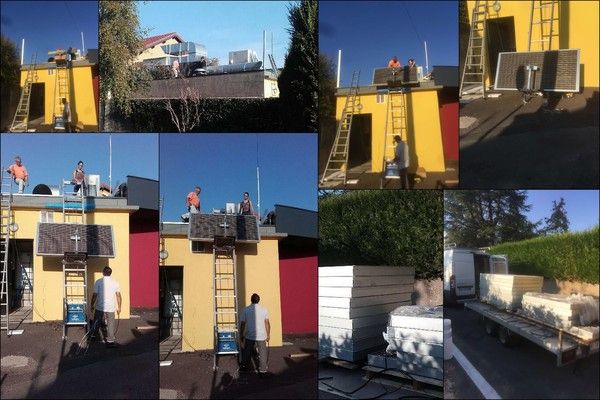 les installateurs sont venus installer les panneaux anti-bruits et écologique sur le toit de l'Espace Culturel de Rencontre de la commune. Ce mur protégera les riverains des bruits possibles de la ventilation du chauffage et de la climatisation.