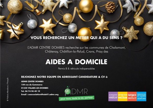 L’ADMR Centre Dombes recrute des aides à domicile sur votre secteur.